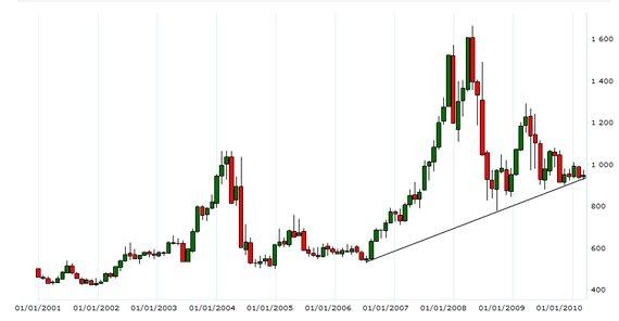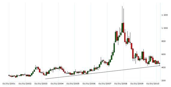 Взлета цен на зерно на мировом рынке подобно произошедшему в 2008 г., не ожидается в течение тридцати лет, считают аналитики Департамента сельского хозяйства США (USDA). По мнению Рона Тростла, координатора интернациональных проектов депсельхоза, такое поведение кривой, отражающей изменение цены, случается не чаще одного раза в несколько десятилетий.