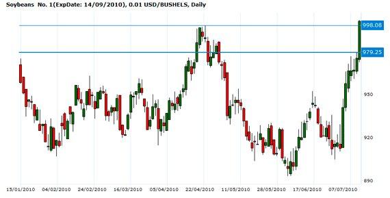 Soybeans No. 1(ExpDate: 14/09/2010), 0.01 USD/BUSHELS, Daily
