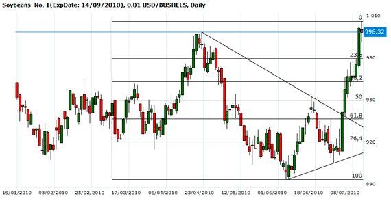 Soybeans No. 1(ExpDate: 14/09/2010), 0.01 USD/BUSHELS, Daily