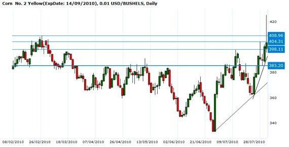 Corn No. 2 Yellow(ExpDate: 14/09/2010), 0.01 USD/BUSHELS, Daily