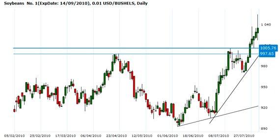 Soybeans No. 1(ExpDate: 14/09/2010), 0.01 USD/BUSHELS, Daily