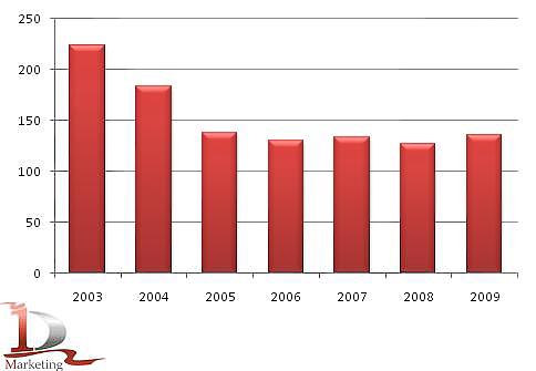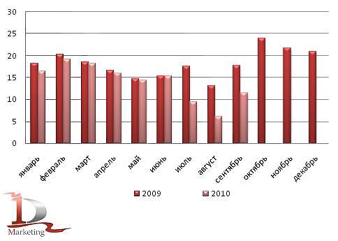 Что касается урожайности на убранную площадь, то она сокращается: в 2009 г. по сравнению с 2008 г. — на 10%. По состоянию на 9 ноября 2010 года она составила 6,6 ц/га.