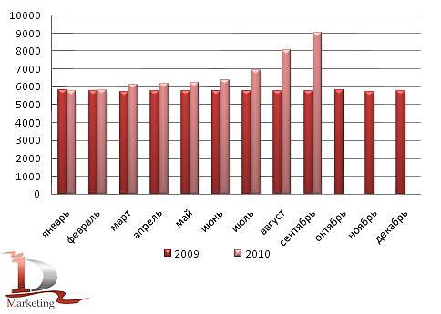 Динамика средних цен производителей гречихи в 2009 — сентябре 2010 гг. (руб./т):