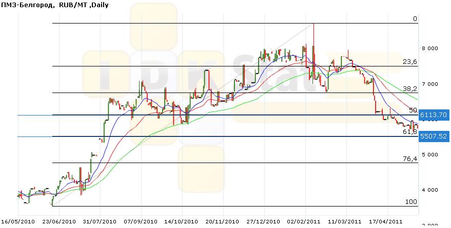 График пшеницы 3-го класса по базису Белгород закрылся по результатам сегодняшних торгов на отметке 5730 руб/тн. Ближайший уровень поддержки – 5500, уровень сопротивления – 6100.