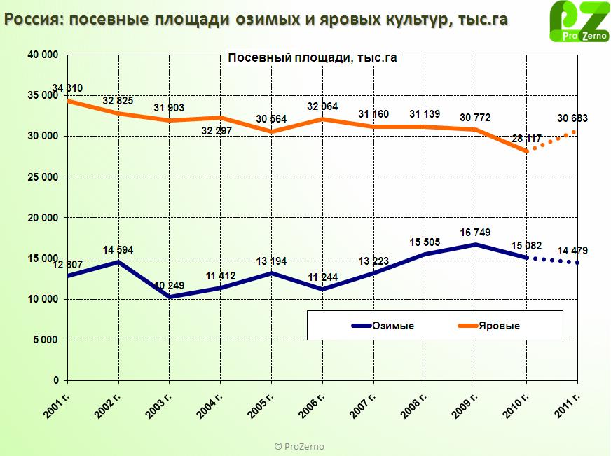 Далее, полагаю, что восстановится нормальный объем яровых. Это уже сейчас становится очевидным фактором. Мой прогнозный вариант немножко более оптимистичен, чем взгляд Минсельхоза, они полагают 30,2-30,3 млн. гектар яровых, я думаю, что будет все-таки больше. И некоторые регионы уже рапортуют о том, что начинают перевыполнять прогнозные оценки Минсельхоза, и яровой сев набирает темп.