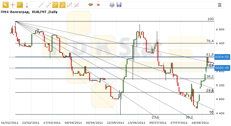 Пшеница 4-го класса по базису Волгоград в четверг понизилась на 40 пунктов до отметки 5820 руб/тн. Ближайший уровень поддержки – 5960, уровень сопротивления – 6000 руб/тн.