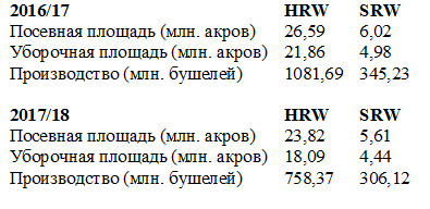 Производство пшеницы в США сокращено на 20,5 млн. бушелей; экспорт 2017/18 – без изменений