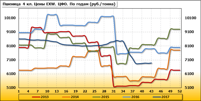 Цены на пшеницу 4-го класса поднялись на 30 руб./т. и на данный момент составляют 8 200 рублей за тонну.
