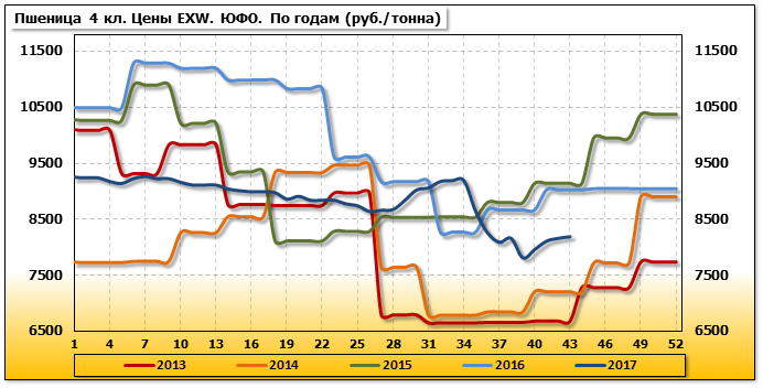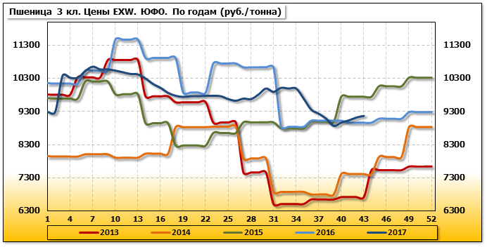 В Южном федеральном округе внутренние цены на пшеницу 3 класса выросли на 50 руб./т. и на данный момент составляют 9 185 рублей за тонну.