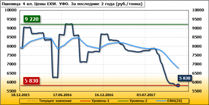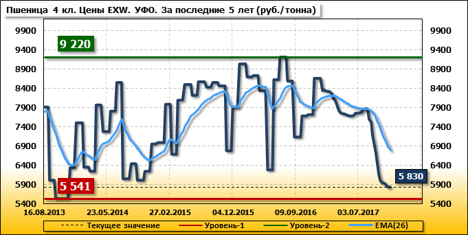 Цены на пшеницу 4-го класса не изменились и составляют 5 830 рублей за тонну.