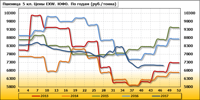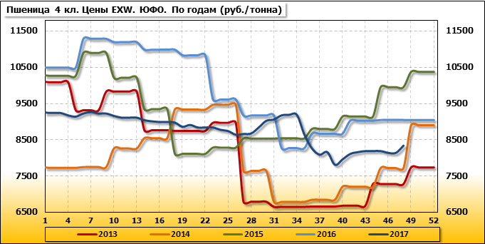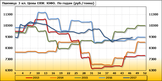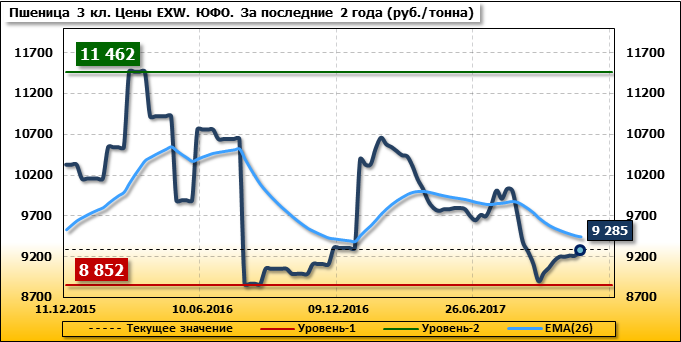 В Южном федеральном округе внутренние цены на пшеницу 3 класса выросли на 85 руб./т. и на данный момент составляют 9 285 рублей за тонну.