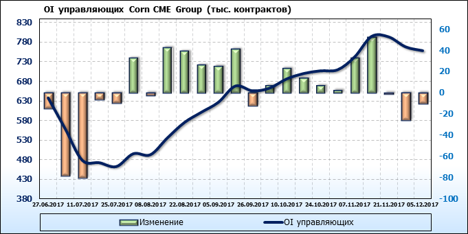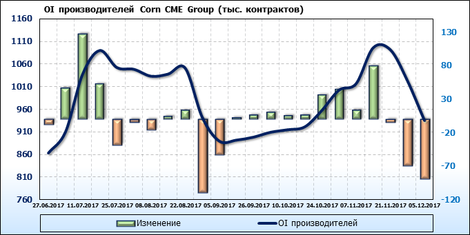 Открытый интерес производителей упал на 88 тысяч контрактов. Объем контрактов, направленных как правило на хеджирование, составляет 935 472 штуки. Деньги производителей в течение прошлой недели уходили с рынка не видя привлекательности в текущей ситуации.