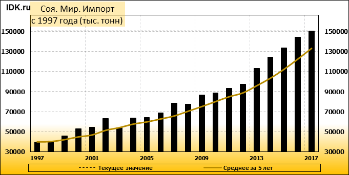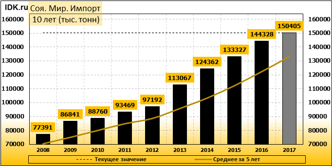 Импорт: составит 150 405 тысяч тонн. Значение по прошествии месяца поднялось на 0.19 процента.