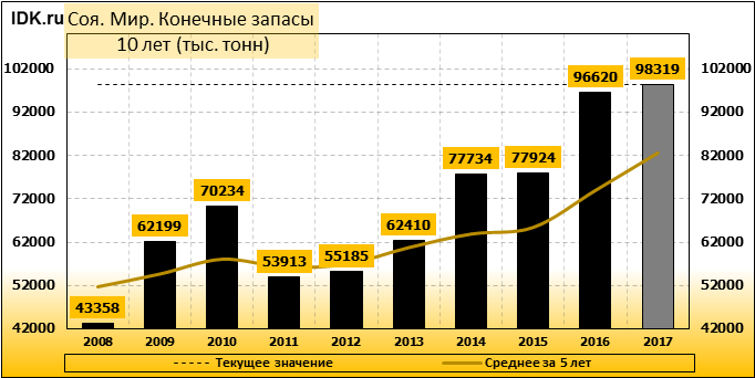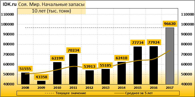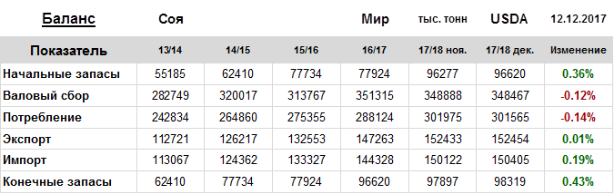За прошедший месяц министерство сельского хозяйства США (USDA) на 12.12.2017 пересмотрело Баланс сои для Мира в сезоне 17/18 следующим образом: