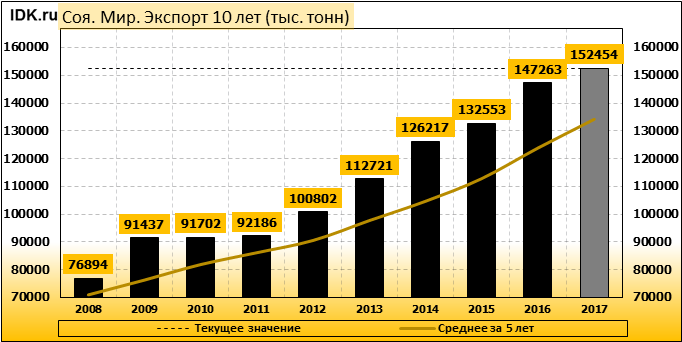 Экспорт: оценивается в 152 454 тысячи тонн. За месяц показатель вырос на 0.01 процента.