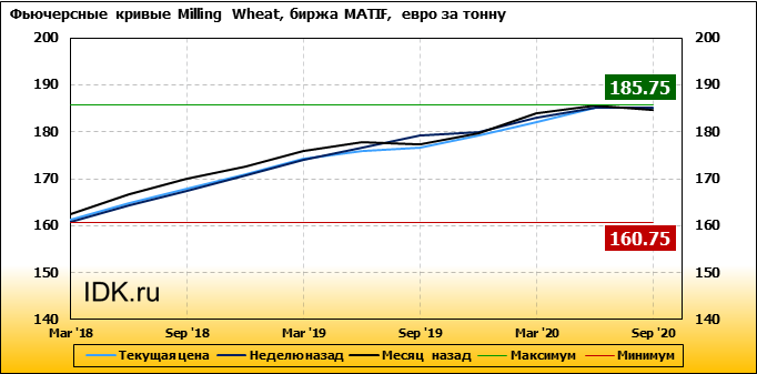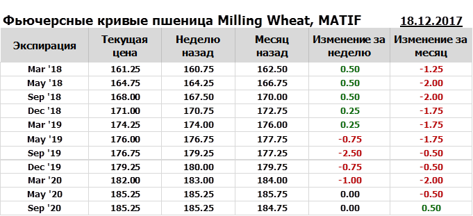 На 18.12.2017 стоимость пшеницы Milling Wheat на бирже MATIF по контракту Mar’18 составила 161.25 евро за тонну. За прошедшую неделю стоимость пшеницы Milling Wheat выросла на 0.5 евро/тонну.