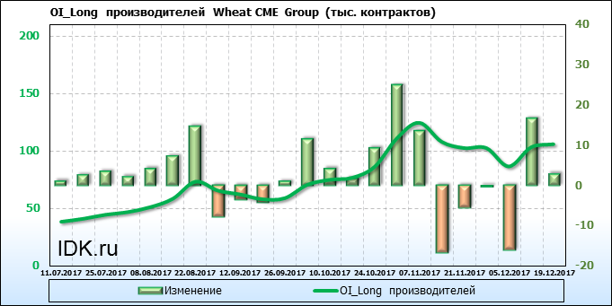 Открытый интерес производителей вырос на 6 тысяч контрактов. Объем контрактов, направленных как правило на хеджирование, составляет 201 295 штук. Деньги производителей в течение прошлой недели приходили на рынок поддерживая тенденцию.