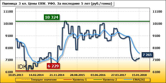 Внутренние цены на пшеницу 3 класса в Уральском федеральном округе выросли на 15 руб./т. и на данный момент составляют 7 265 рублей за тонну.