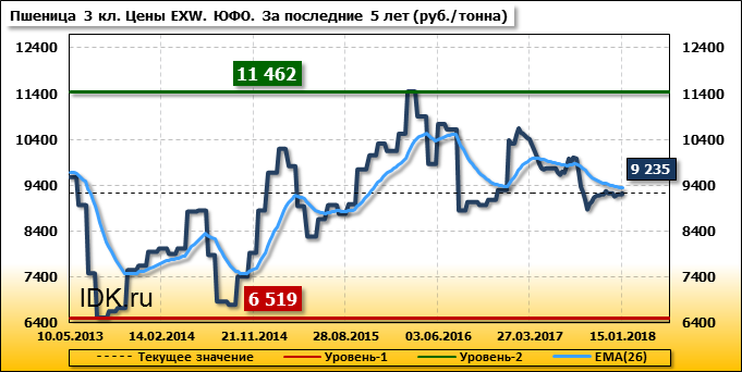 В Южном федеральном округе внутренние цены на пшеницу 3 класса выросли на 35 руб./т. и на данный момент составляют 9 235 рублей за тонну.