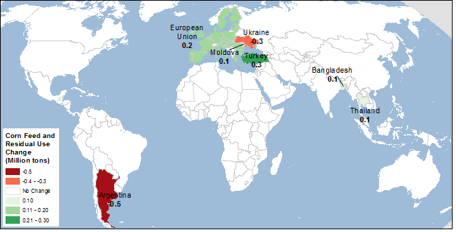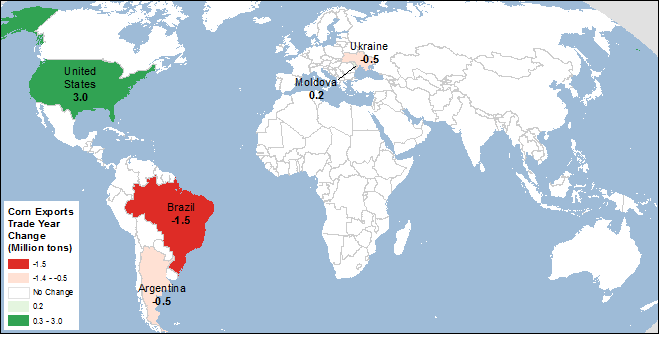Для получения наглядной информации об основных изменениях экспорта кукурузы в этом месяце см. карту 3.