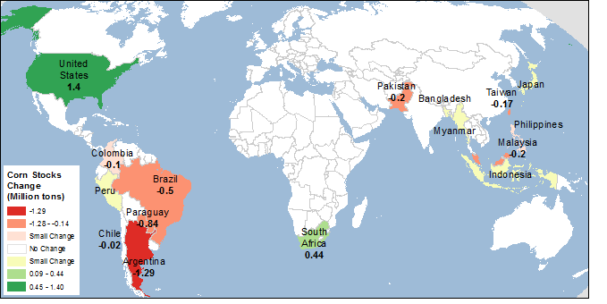 Изменения конечных запасов кукурузы наглядно представлены на карте 3.