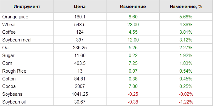 По результатам торгов 1 мая на чикагской бирже СВОТ котировки пшеницы существенно выросли и достигли $194,6 за тонну, что на $21 за тонну превышает показатель предыдущей недели ($173,6 за тонну по состоянию на 24 апреля). Рост цен был обусловлен высокой активностью спекулятивных продаж на бирже в первый торговый день текущего месяца, а также тем, что в США, по данным USDA, сохраняются засушливые погодные условия, что может способствовать ухудшению состояния посевов озимой пшеницы и задержке сева яровой зерновой. Засуха также наблюдается и в Австралии, в связи с чем второй сезон кряду в стране производство пшеницы может снизится, что также оказывало поддержку ценам.