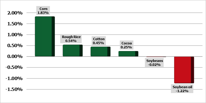 26 апреля 2018 года на Чикагской бирже наблюдался очередной разворот цен на пшеницу вниз. Это произошло из-за фиксации длинных позиций со стороны фондов. Неопределенность, связанная с состоянием посевов пшеницы, до сих пор остается элементом, который влияет на развитие цен. Вместе с тем, каждая продажа пшеничных контрактов сопровождается покупкой этих позиций. Экспортные данные за неделю оказались хуже прогнозных не только по кукурузе, но и по сое. Однако по пшенице они оказались выше, чем прогнозы аналитиков. Соя нашла поддержку на фоне перспективы торговой сделки между Китаем и Америкой. Напомним, что 26 апреля текущего года по кукурузе было продано 4 тысячи контрактов, а по пшенице — 5 тысяч.