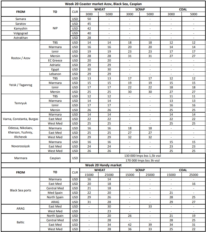 Судовладельцы выражают уверенность по поводу дальнейшего оживления рынка, так как весь спотовый тоннаж, скопление которого наблюдалось в Азовском бассейне на 19 неделе, был зафрахтован.