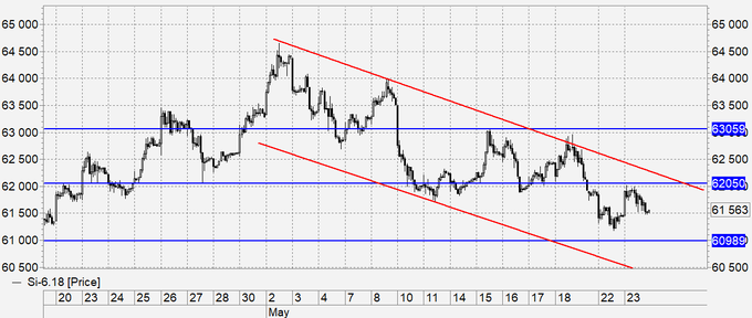 Продажа: нет. Кто в позиции, перенесите стоп на 62150. Цель: 59600.