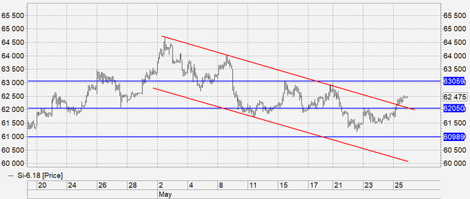 Покупка: после роста выше 63100. Стоп: 62400. Цель: 70000.