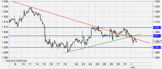 Золото: интерес к американским облигациям способствует уходу лишней ликвидности из золота в бонды. Переговоры с Северной Кореей будут, падения на рынке акций нет. Есть страх начала боевых действий на Донбассе, прямо во время мирового чемпионата по футболу, но вряд ли данный конфликт выйдет за рамки локального. Стороны готовят копья, это очевидно. А пока золото опустилось ниже 1300, можно продавать.