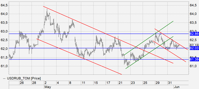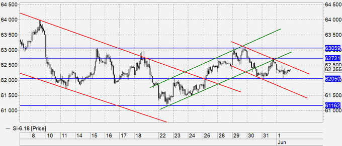 Рубль: ждем падения на рынке нефти, а следовательно, и ослабления рубля. Проход выше 62.50 откроет отметку 65.00, что и будем учитывать в своей торговле. Пока рынок под 62.20 существует перспектива падения к 59.00, но для этого или должна продолжать дорожать нефть, или мы должны видеть рост экспорта и падение импорта, или должно наблюдаться прекращение вывода каптала из страны. Ничего из перечисленного мы пока не наблюдаем. Есть профицит бюджета, что стабилизирует ситуацию, но не более.