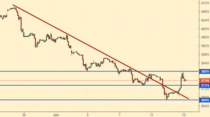 Продажа: при касании 390.0. Стоп: 395.0. Цель: 360.0.