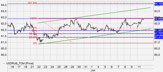 Рубль: мы находимся в районе 63.00, который на фоне падения цен на нефть будет сегодня взят быками, и мы неспешно пойдем на 65.00. Если же появятся иные драйверы, усиление распродаж долговых бумаг РФ, например, то движение к 70.00, которое давно ожидается, станет явью.
