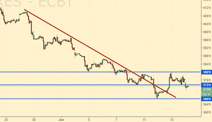Кукуруза: не видим мы никаких отскоков. Попыток подняться хотя бы к 390.0 просто нет. А жаль, там бы и продать. Кукуруза будет находиться под сильным давлением еще очень долгое время. Возможно, принятие каких-то дополнительных мер, субсидий, по биоэтанолу, не пропадать же добру, поддержит рынок, но пока никаких идей у быков нет.