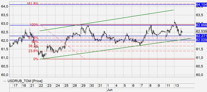Рубль: доллар пока притормозил с укреплением на внешних рынках, что помогает рублю держаться на плаву. Мы выросли выше 63.00, многие вошли в покупки, но затем рынок вернулся под данный уровень на 62.50. Здесь можно докупить с прежними целями на 70.00. Пока мы не ждем хода к 60.00, для этого надо закрываться ниже 62.00, а это не так-то легко будет сделать. Разве только нефть поможет.