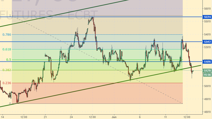 Пшеница: вчера рынок пробил долгосрочную линию поддержки, чем создал предпосылки для начала серьезного падения в район 450.0. Наши попытки зацепиться за покупки, как видно, успехом не увенчались. То, что мы продолжаем находиться над 500.0 в данной ситуации не стоит воспринимать как нечто позитивное. Удержаться на плаву будет практически невозможно. Теперь только продаем.