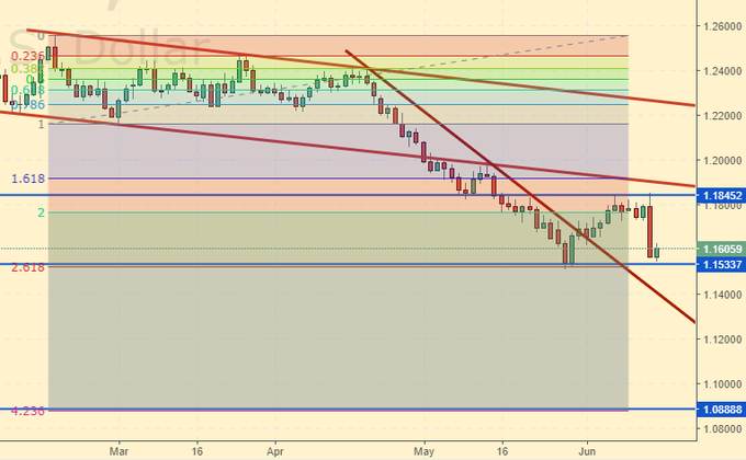 Сценарий роста: ФРС ставку поднял на 0.25%, стало 1.75%. А ЕЦБ оставил ставку на нуле, да еще обозначил, что процедуру количественного смягчения свернет только если увидит сигналы роста. В такой ситуации рынок провалился к минимумам этого года во второй раз. И тут интрига. Сможем ли мы пройти ниже 1.1530? Ведь если нет, то все снова посмотрят на 1.3000. Здесь можно рискнуть и купить. Шансы на рост скромны, но они есть.