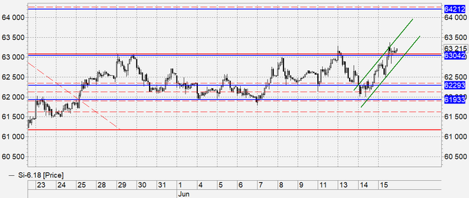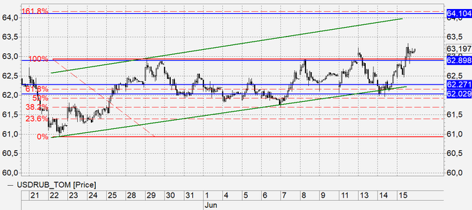 Рубль: стоимость нефти нас не радует, правительство нас не радует, а раз так, то мы сегодня будем пытаться приблизиться к 64.10. Достигнув данной отметки, рынок возьмет паузу и вернется к 63.00 после чего мы будем расти дальше к 66.00. Это планы быков по доллару, а вот у медведей, судя по их безволию, планов, кроме плана сдаться, пока никаких нет.