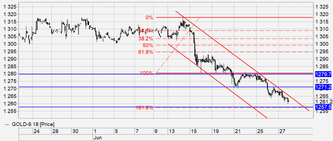 Золото: котировки все ближе к 1258. Большого задора на рынке не видно – нет длинных красных свечей. Падение протекает в несколько дежурном режиме, реализуя новый консенсус участников рынка. Исходя из характера падения, можем предположить, что после касания 1258 мы вернемся к 1270.