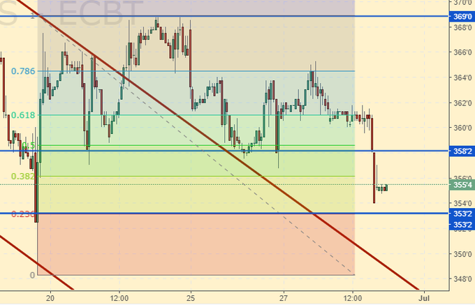Кукуруза: по итогам вчерашнего дня кроме как за подтягивание стоп ордера до 359.0 хвалить себя больше не за что. Что делать теперь? Выглядит все очень мрачно. Пока не будет роста выше 362.0 покупать не будем.