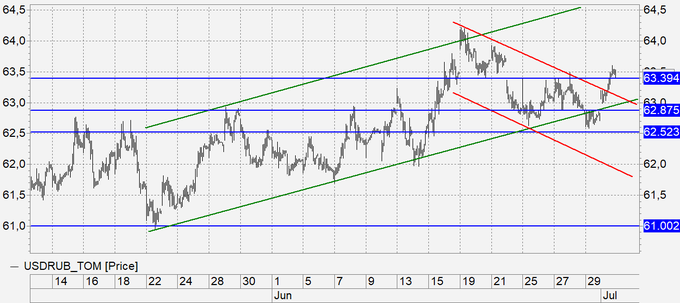 Рубль: «будем верить» — писали мы вчера. В чем сегодня каемся. На самом деле вчерашний день синхронно отторговали вместе с нефтью. Но пугает то, что как бы высоко нефть не забиралась на фазе роста нефти рубль не укрепляется, зато хорошо проседает на фазе падения. В складывающихся обстоятельствах, ждем возврата цен выше 63.50 и покупаем, поглядывая на нефть. В целом, сильных движений на рынке сегодня не ждем.