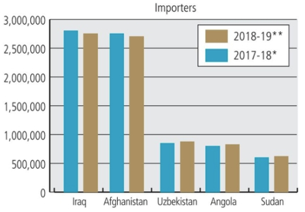 Из-за конфликта в регионе поставки в Ирак значительно возросли, сообщает IGC. В 2015-16 году страна импортировала 1,91 млн. тонн, но в 2017-18 году – уже 2,8 млн. тонн.