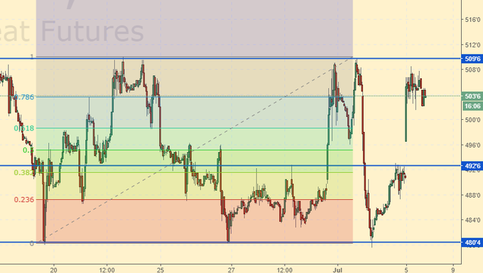 Пшеница (майский контракт, CME Group, исполнение 13.07.2018)