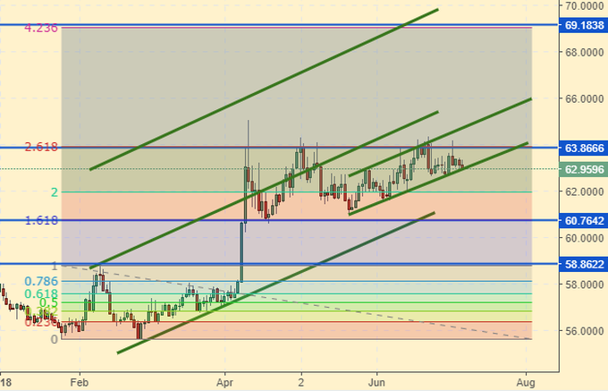 Ситуация по рублю тяготеет к пробою вниз уровня 62.50 и падению к 60.50. Это был бы спокойный летний сценарий, который устроил бы абсолютно всех, так как нефть находится на весьма привлекательных уровнях.