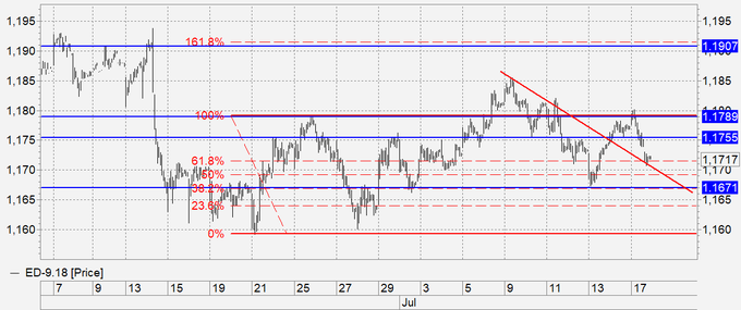 Евро: рынок продолжает держаться выше 1.1700, и это разумно. Данные по инфляции в Еврозоне подразумевают рост инфляции, что должно подтолкнуть ЕЦБ или к повышению ставки на 0,1% 27 июля, или хотя бы мы должны услышать жесткий комментарий: что никакого количественного смягчения. Все за работу, товарищи. Футбол закончился.