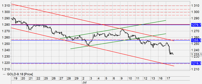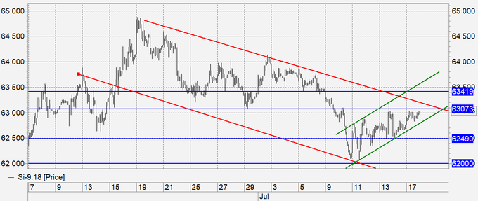 Золото: мы дисциплинировано идем к 1220, так как пока инвесторам нет никакого смысла прятаться в золоте. Уровень тревоги посреди лета достаточно низок. Конечно, если 1-го августа ФРС не поднимет ставку, то мы можем долларов сто наверх сходить на ослаблении доллара. Но это пока для «часовок» весьма дальняя перспектива, хотя ей и нужно держать в голове. Стоим вниз.