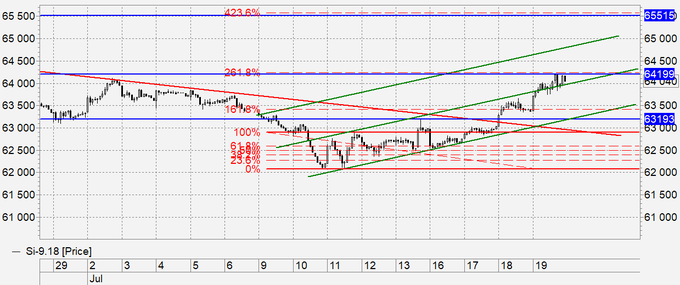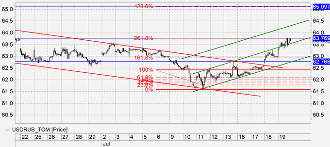 Рубль: дошли мы до 63.75. Здесь надо нам немного скорректироваться и стать чуть сильнее, после фазы ослабления. Шорт по доллару сегодня возможен с текущих уровней. В случае роста выше 63.75 – никаких шортов не открываем! И рынку свою правоту своими же деньгами не доказываем! Дело может кончится быстрым ходом к 65.00. А дальше 70.00, а еще дальше — никто не знает.