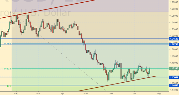 Сценарий падения: Трамп засомневался в необходимости сильного доллара, и вот уже в пятницу мы видим небольшой всплеск. Поведение американского президента укладывается в нашу модель. (Не слишком фраза? Нет. Нормально. Едем дальше). Посмотрим, что предпримет ЕЦБ, пока ставим на то, что как минимум риторика будет агрессивной. Евро не продаем.
