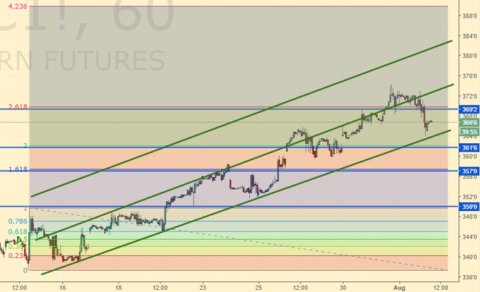 Кукуруза: кукуруза несколько скорректировалась. Вчерашний откат не портит общей картины и даже наоборот призывает нас немного нарастить позиции. Если ниже 360.0 мы не сходим, и посетим 390.0, то о большем в данной ситуации и мечтать нельзя. Китай погудит, погудит, но так ничего и не сделает с американскими санкциями. Китайская экономика автономной не является. Придется сохранять хорошую мину при плохой игре. И уж точно, новых пошлин на продовольствие вводить Китай не станет.
